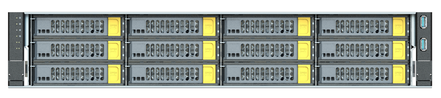 Дисковые бекплейны включают пассивный SAS/SATA передний и тыльные бекплейны. Установка сервера в типовые 19’ шкафы (8мм) обеспечивает удобство эксплуатации, а возможность устанавливаться в типовые шкафы 8мм глубиной с учетом внешних кабельных сборок делает его гибким в использовании. Замена диска не требует выдвижения дисковых полок, каждый диск доступен независимо с лицевой и тыльной панели.