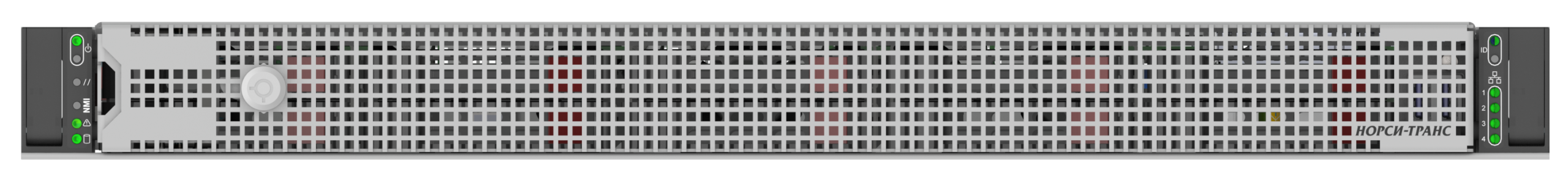 Сервер поставляется с блоком питания мощностью 1 Вт, установлен в типовые 19’ шкафы (8мм), и комплектуется улучшенными рельсами и фирменной транспортной упаковкой «НОРСИ-ТРАНС».