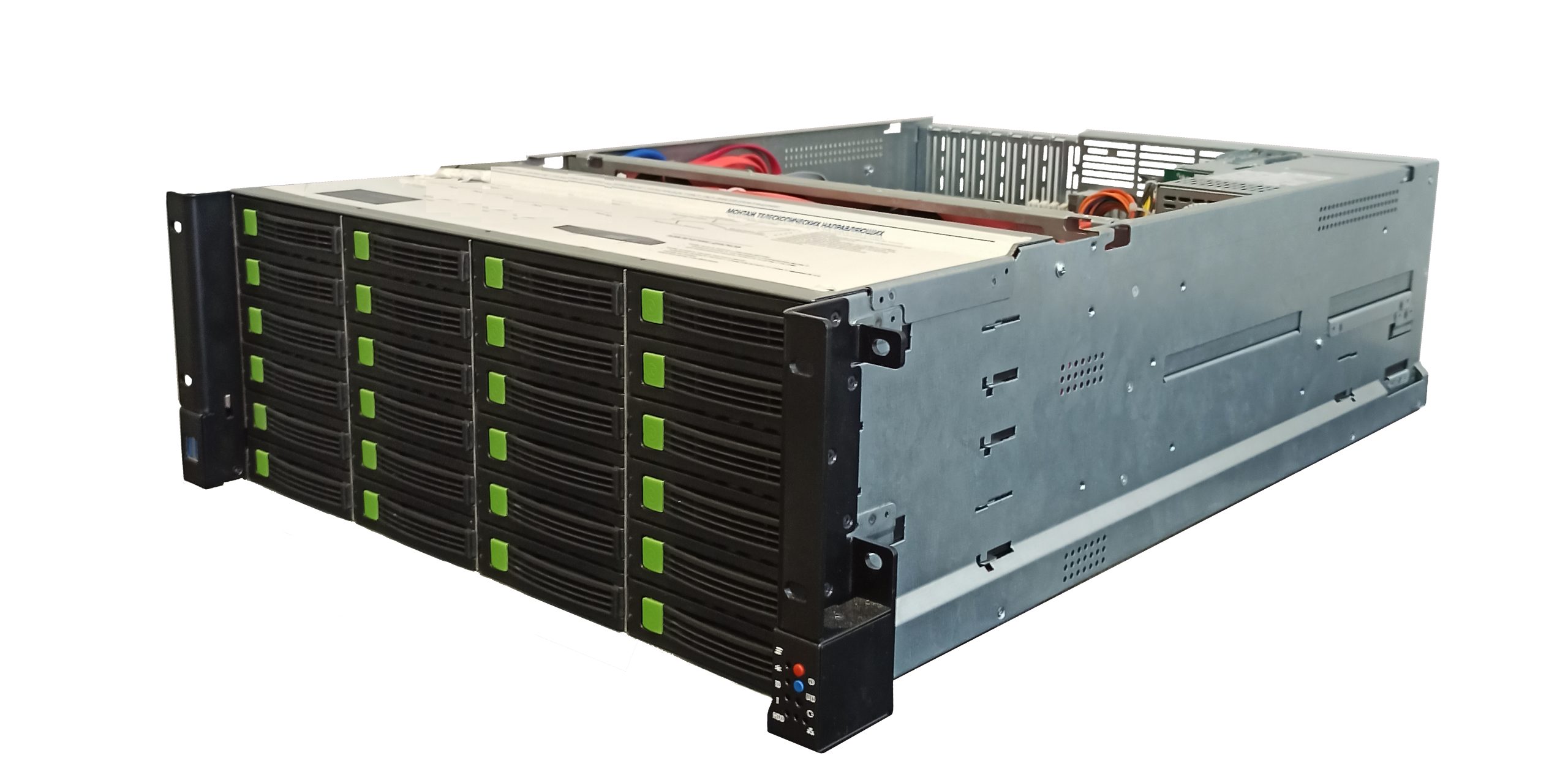 Стоечный сервер Рикор 6436 в корпусе форм-фактора 4U, оборудованный 36 дисками 3,5 дюйма с горячей заменой, работает на масштабируемых процессорах Intel Xeon Scalable и предоставляет 16 слотов для памяти DDR4. Производство серверов Rikor АО Рикор Электроникс в России подтверждено министерством промышленности и торговли РФ.